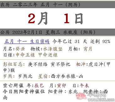 公历 2023年2月1日 星期三 水瓶座(阳历)