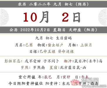 2、2022年农历(阴历)九月初七宜忌事项?