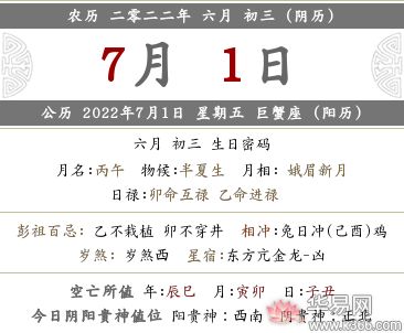 公历 2022年7月1日 星期五 巨蟹座(阳历)
