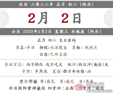 2022年农历(阴历)正月初二是哪一天?