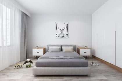 床铺应该与门向垂直,但如果房间较小的话,垂直安床则会与房门对冲,如果门正冲着床,或冲着床的一部分,则应该设置屏风或幕帘挡之。