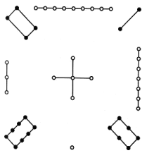 设计思想是:以象涵数,以数示象。它由1至10的10个自然数构成,模拟天体星象。象分四方:左东右西,上南下北。数以点计:白点为奇数,或称天数,代表阳;黑点为偶数,或称地数,代表阴。点数由下而上,左、中、右,从1到10按内外两层顺序排列。每一方位的天地数之差皆为5,而天数之总和25,地数之综合为30,其差也为5。