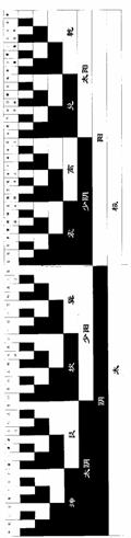阴和阳是矛盾的两个方面,它们又统一在三划卦中。一个三划卦也是一个矛盾的个体,两两相荡相错,就形成了一个六划卦,又达到了统一。六十四卦就是这样形成的。它们的推荡过程有以下两种形式: