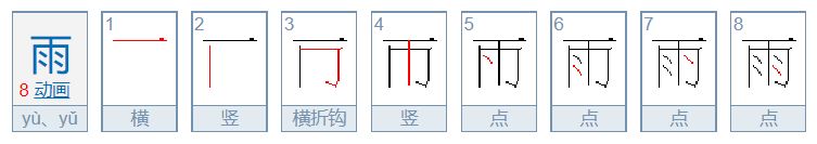 雨字读音是yǔ,起名笔画数是8划,五行属水,该字最早见于甲骨文。一般来说雨字取名寓意是希望孩子有一个比较滋润的生活,同时雨字表象为坚刚,意志刚健,有着富于进取的吉祥数理。