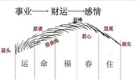 以眉毛看父母遗传的体质,推断其同胞兄弟姐妹有多少。现代实施节育,所以已无必要,不过眉毛仍然可以表彰其感情与情绪,不妨扩大解释为与朋友同事的相处感情,以及情绪的变化,再旁及作事的勇气与胆色。眉头上方为交友部位,象徵交友的损益,故不宜有不好的纹及疤。