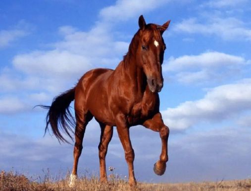 一、马(学名:Equus caballus),马科马属草食性动物,分布于中国、蒙古、阿拉伯等地。马头面平直而偏长,耳短,四肢长,骨骼坚实,肌腱和韧带发育良好,蹄质坚硬,能在坚硬地面上迅速奔驰。毛色复杂,汗腺发达,胸廓深广,心肺发达。其不畏严寒酷暑,容易适应新环境,听觉和嗅觉敏锐。通过化石研究已经证实,马属动物的祖先—始新马出现于5500万年前的北美,其身体如同狐狸样大小,以多汁嫩叶为食,前足有四指,后足有三趾。随后,自然界发生地形、气候及生态变化,出现了开阔的内陆平原,马的进化也逐渐适应了这些变化。马的进化经历了始马、中马、原马、上新马和真马等主要发展阶段。其主要进化特点是:体躯增大;体高增高,体高由原来的40cm增高至120cm以上;趾由三趾或四趾进化为单趾(单蹄),以利于奔跑;牙齿由低冠的阜头结构向高冠、齿质坚硬、齿面宽而多皱结构变化,以利于采食干草;脑容量增大。