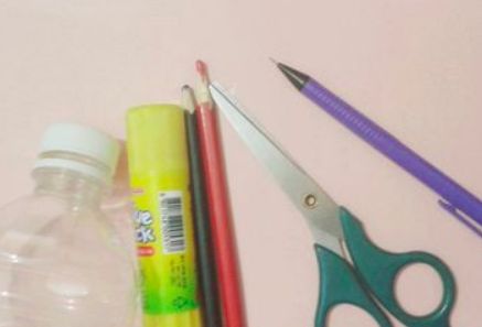 需要的材料有矿泉水瓶一个、彩纸一张、彩笔两支、铅笔一支、剪刀一把、胶棒一个。
