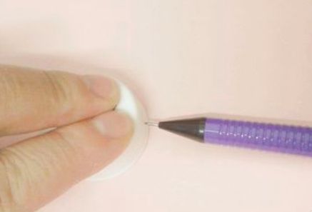 2、先用铅笔围着瓶盖,在彩纸上画一个圆。