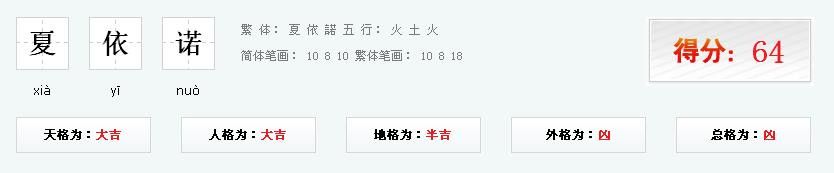 夏依诺的姓名测试结果