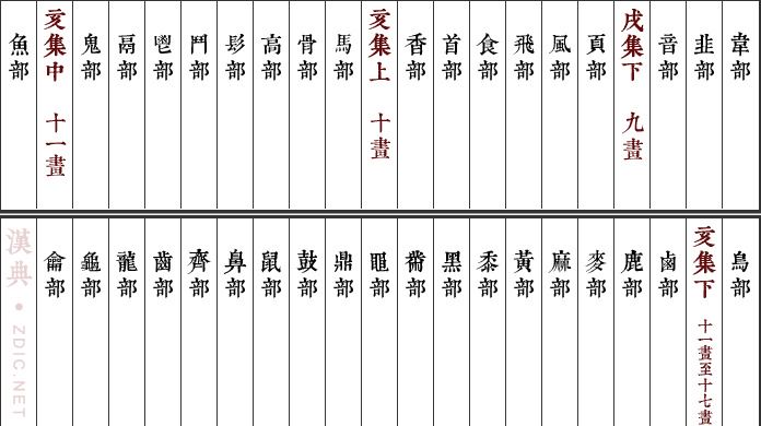 如图,十一画的是“鱼”部和“鸟”部的字,跟今天的字典差别巨大的。注意竖着从右向左看啊:)