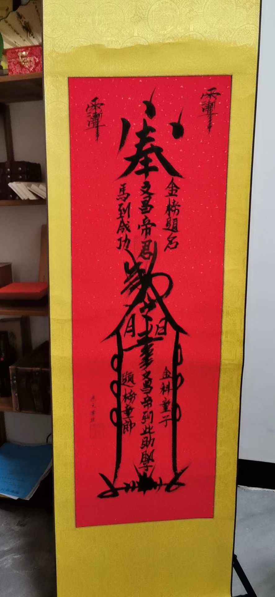 3、用红布包裹拿到寺庙。