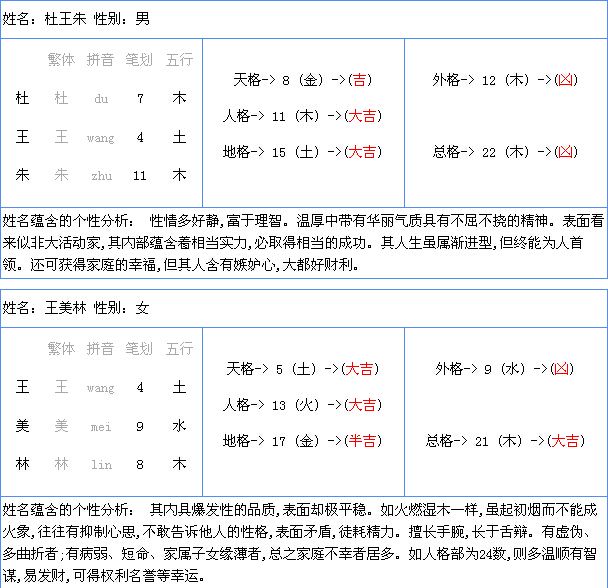 姓名配对测试婚姻杜王朱和王美林