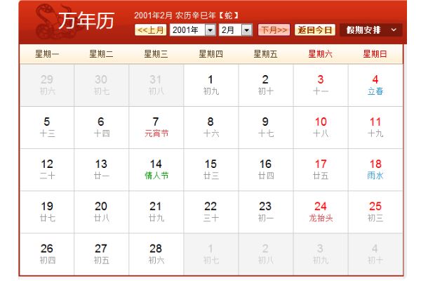 阳历2001年2月农历辛巳年(【生肖:蛇】中华人民成立52年