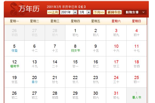 阳历2001年3月农历辛巳年(【生肖:蛇】中华人民成立52年