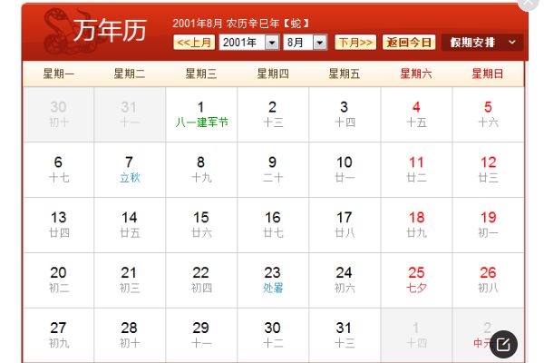 阳历2001年7月农历辛巳年、阳历2001年8月农历辛巳年(【生肖:蛇】中华人民成立52年