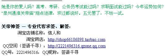 2、把“求签人的:姓名、性别、出生年月、所在地;所求事项”,通过旺旺告诉我们,越详细越好。