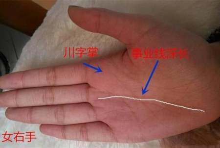 古人认为「川字掌」的男性事业上会很有发展,塬因也正是如此,当然放在女性上,过于重事业,难免对婚姻造成压力,但若只看事业的话,女人川字纹手相在事业的成就会较其他掌纹有较好的发展性。
