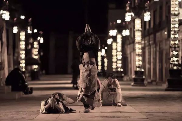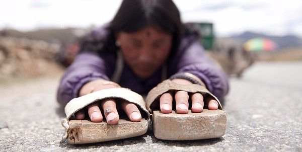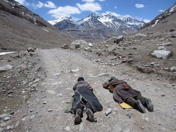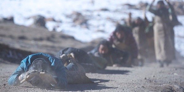 遇到风雪,他们在风雪中磕头;遇到水洼,他们在水洼里匍匐。