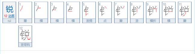 组词:锐利、敏锐、尖锐、锐气、犀锐、新锐、锐角、锐意、精锐、锐减。