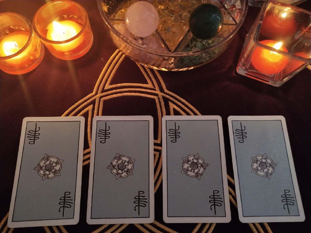 2、然后从下面四张塔罗牌中选择一张最有感觉到牌;