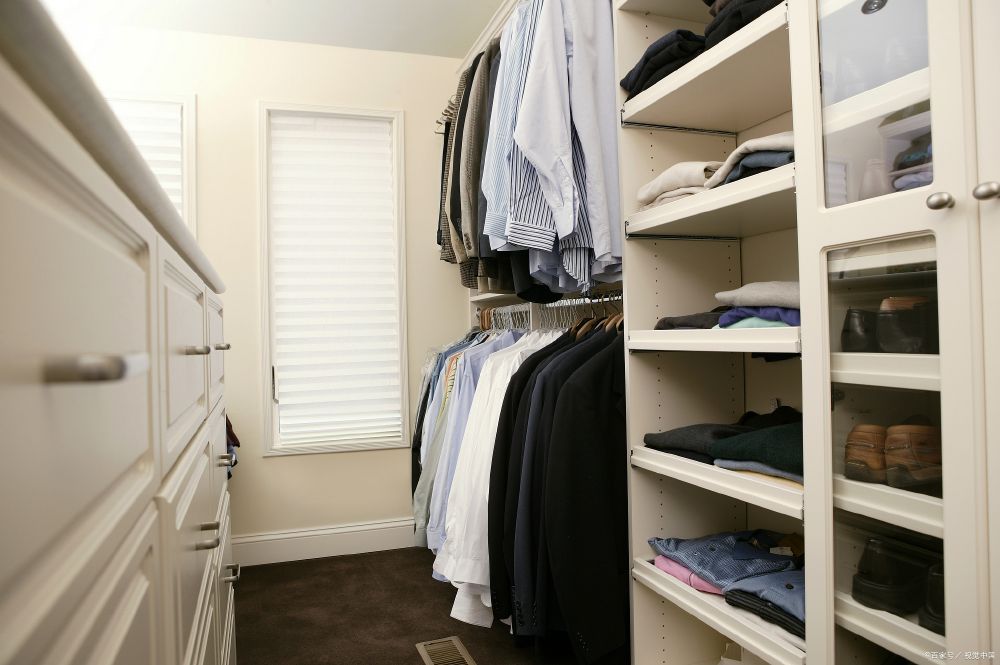 衣柜放在床尾的墙上。因为衣柜离床头很远,即使卧室面积小,压力也很小,根据对保管空间的需求,可以选择整个墙壁的柜子来增加保管空间。但是这种设置占据寝室的活动区域,靠近床会妨碍通过。衣柜可以放置在床的一侧或两侧,在卧室中留下比较方便的区域,以满足其他使用功能(例如,在床的一侧放置休闲椅,在床尾设置桌子等)。缺点是可能会有一点压抑感,可以设置的面积小,影响收纳空间。如果将床设置为“升高”、高度小的体形衣帽间,那么高度低、设置为橱柜抽屉的模型也是不错的选择,占一张家具的面积可以满足两种使用功能设置,为卧室提供尽可能自由的支配空间,但即使床太高,使用也会不方便。