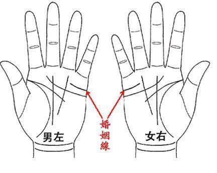 4.有婚姻线三条的人,显示比人对爱情方面较自由,不喜婚姻的约束,所以在自主的意念里,不想早点订下来,走入婚姻的坟墓,本人风流并且多情贞操观念薄弱,容易有情感纠纷,适合于晚婚。婚姻线四条以上的人,显示此人享受肉体的乐趣多于精神,家庭观念淡薄不适合成家,直到中晚年以后吧,或许会找一个能包容自已的人,能够相安定下来的心,这种人不适合过健全的家庭生活。