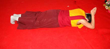 二、回小向大:我给你一块面包,我给你一包饼干,虽是小小的布施,但当我给你时,我心里在回向:我愿这块面包、这包饼干,能让天下的人解除饥饿之苦,获得温饱。本来只是一块小面包,经过这一回向,普天之下的人都能获得这个功德,是多么奇妙的真理。