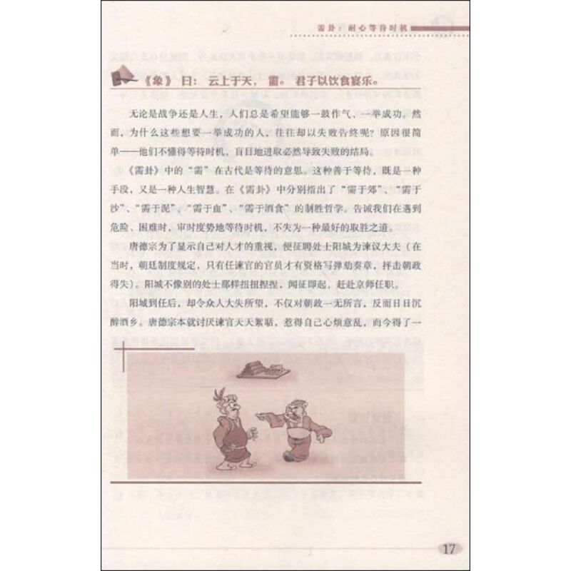 第六爻是客卦的上爻,是对客卦中爻的补充,阳爻,表示客方的素质不仅良好,而且很好,客方的实力不仅很大,而且极大。在这种情况下,主方不宜与客方硬拼,而应当在逃循中与客方灵活周旋,伺机夺取利益。
