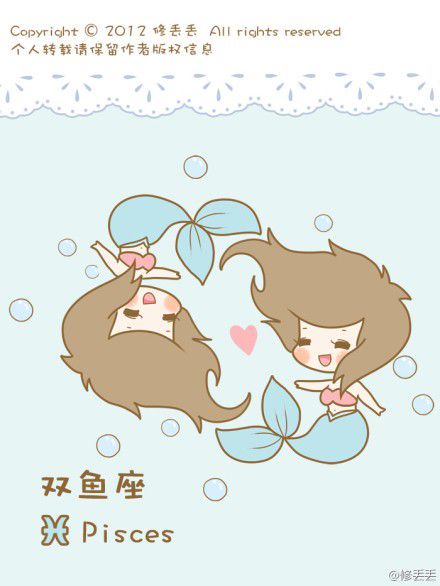 双鱼座(2月19日-3月20日):双鱼座的妹子非常地软萌,头顶上的双鱼中有一颗小小的爱心,和他们的性格一样,充满爱心,很能理解别人,同时生活中显得热情开朗,不过开朗的外表下有一颗细腻敏感的心哦。