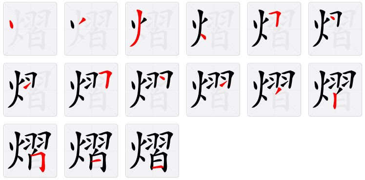 形声字。从火,习(xí)声。本义是光耀,鲜明,同本义。如熠然(闪烁的样子)、熠煜(照耀)、熠烁(光彩;明亮)。古人习惯用这个字做名字,象征孩子前途光明,星光闪耀。
