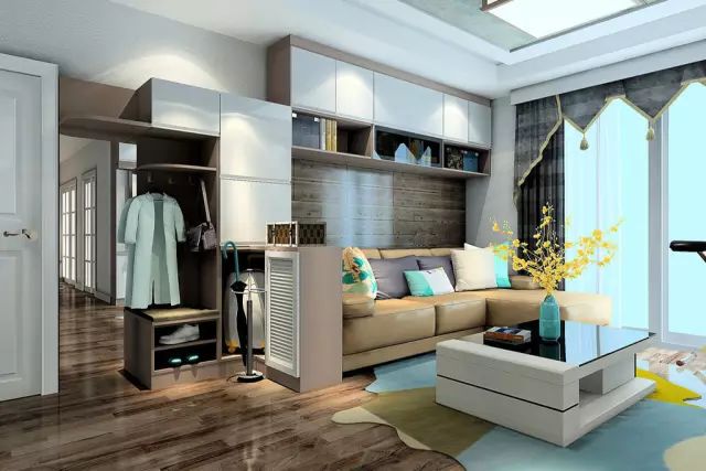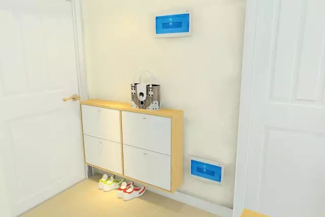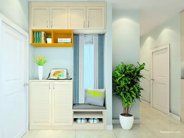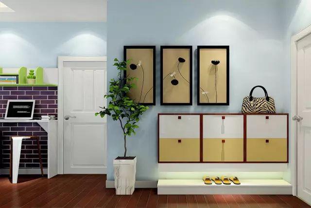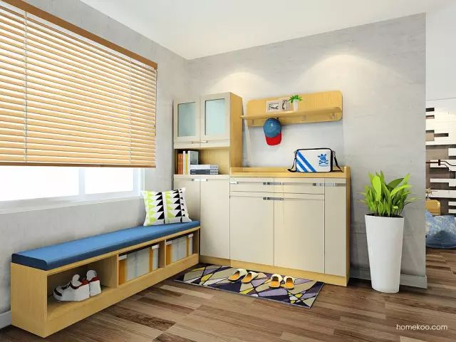 对于玄关较小的家庭,建议将柜门设计成滑动门,厚度不要太大,容量以能存放15双鞋为宜。另有一种“挂”在墙上的组合型鞋柜,节省空间、造型特别,可以尝试一下。