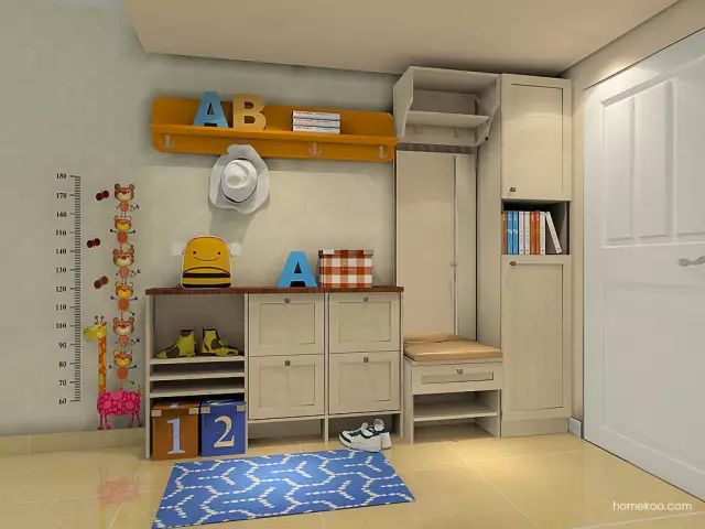中国城市里的普通住宅,进门处玄关不大,按1㎡考虑,一般会设置鞋柜。主要是因为: