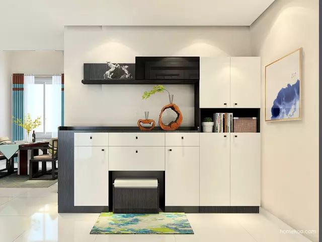 玄关鞋柜是一进门的视觉重点,但也连着其他开放空间。所以在颜色、造型和风格上都需要与整体的居室风格相统一,才能让设计出彩,让人觉得舒服。