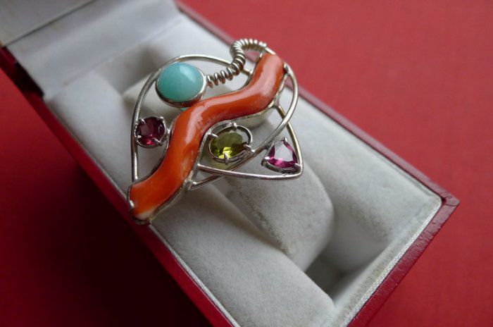黄水晶搭配珊瑚和碧玺+天河石开运坠子
