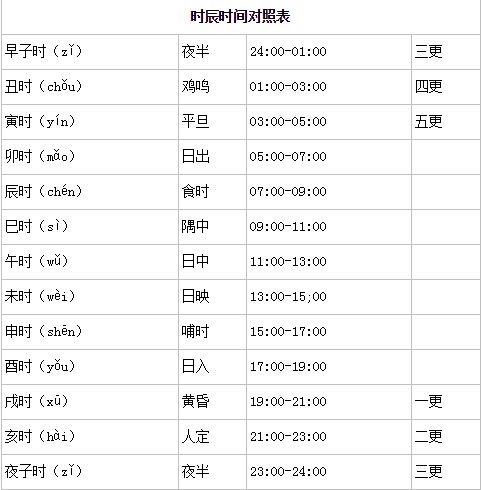 十二时辰对照表口诀