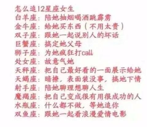 12星座女中,怎样追最快得到手?