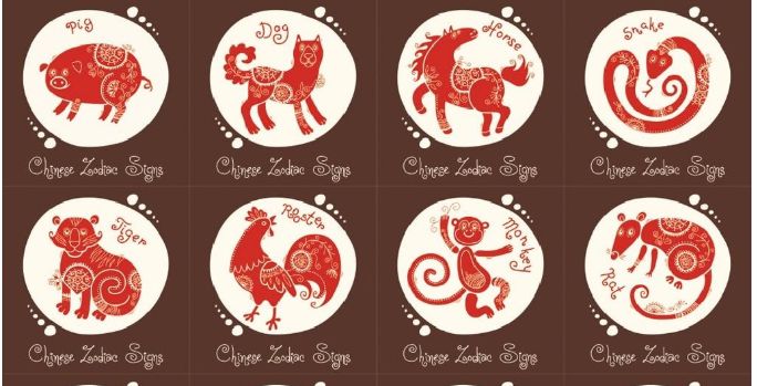 十二生肖:鼠、牛、虎、兔、龙、蛇、马、羊、猴、鸡、狗、猪。