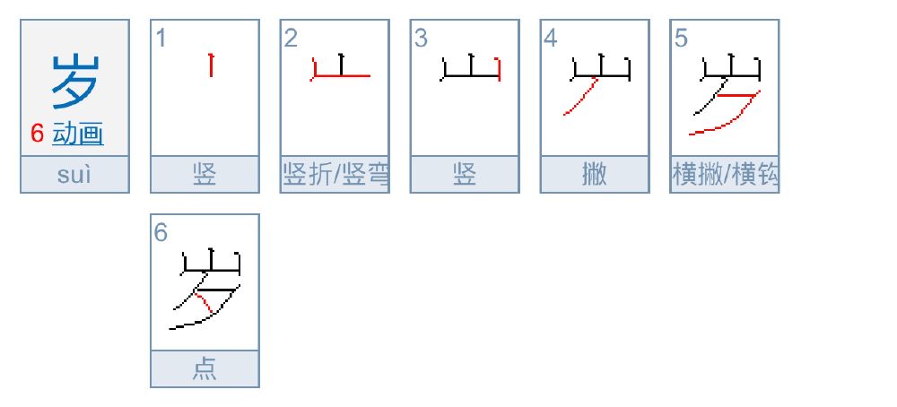1、岁字的拼音:suì