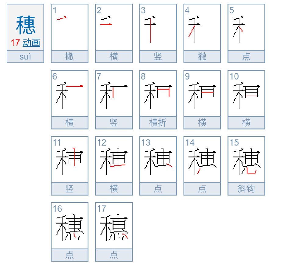 2、穗字的拼音:suì