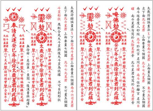 太岁符民间网上有很多流传,很多都是一种格式。实际上,太岁符要分阴和阳的,阴阳命不同,其太岁符的颜色格式也就不同。