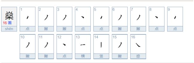 拼音:shēn,部首:火,笔画:16,繁体:燊,五笔:OOOS。