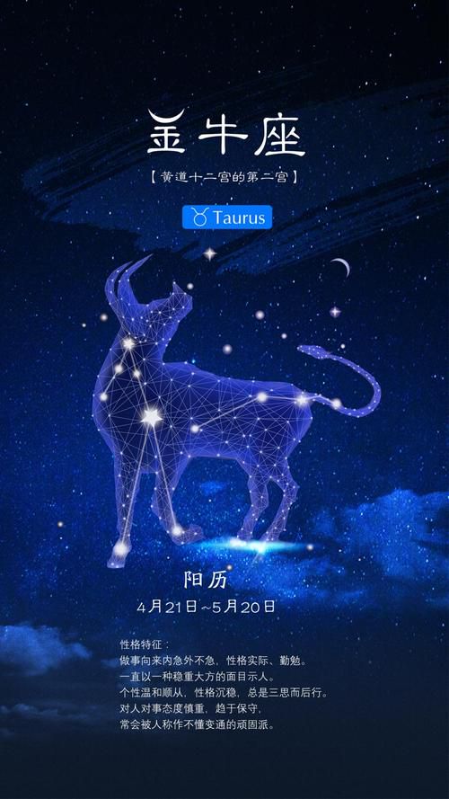 金牛座是黄道的第二个星座,是“土象星座”的第一个星座,故也称“土象的婴孩”。如同这个名称所示,他是一只不折不扣的[牛];而且是一头有[金](物欲)特性,占有欲很强的牛。