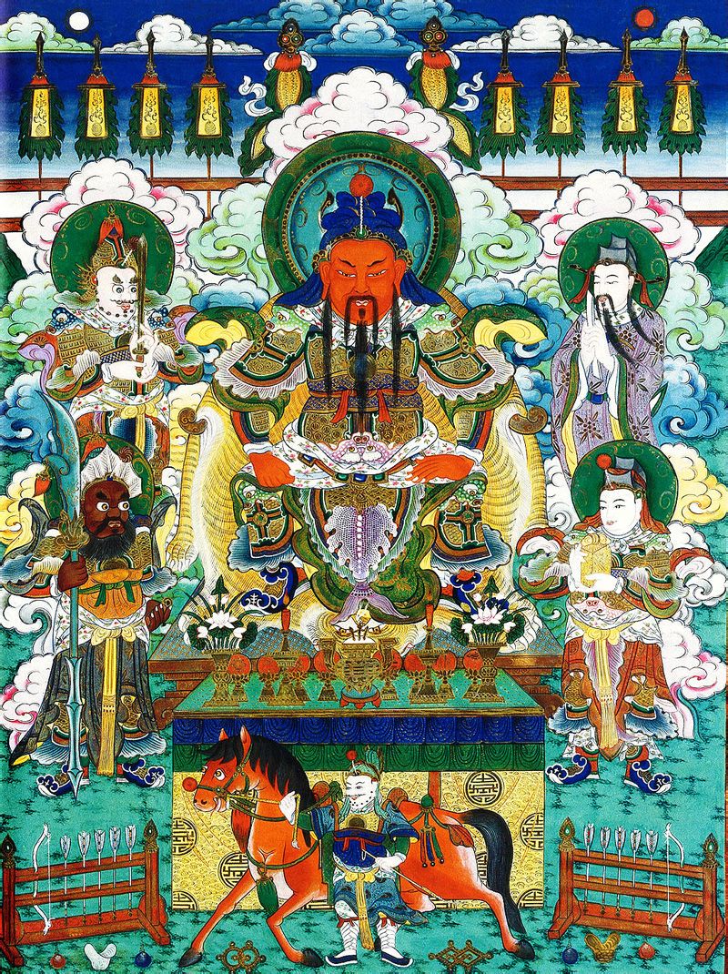 关公曾是密宗本尊马头明王之眷属红面狱主,又称红司命主;也曾示现过藏地护法“尚论多杰东都”等很多护法形象。