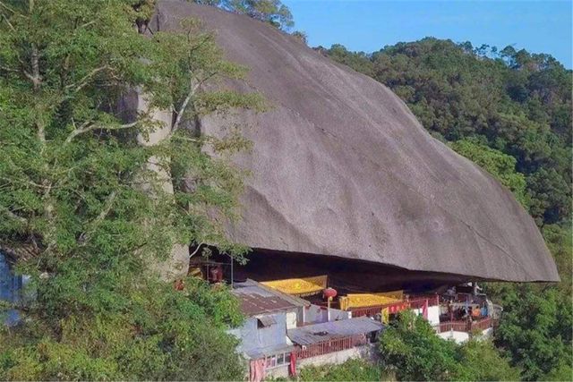 有一座堪称是最奇特的寺庙,“压”在大石块下400年,没门票还超灵验,完全被石头压住了。