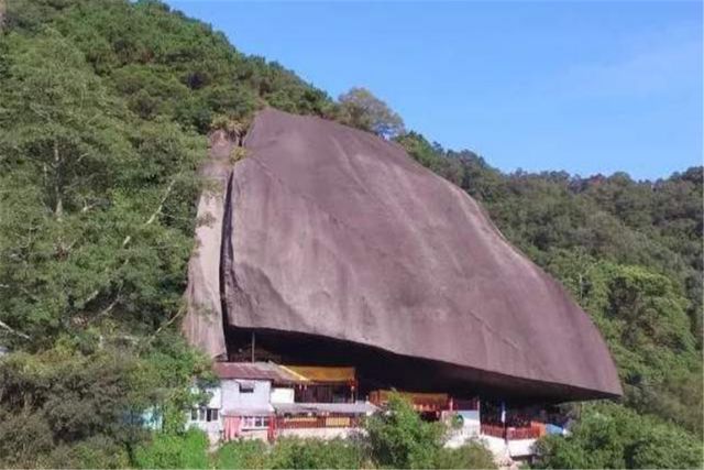 许多游客看到这一惊奇景点时,纷纷拍照留念,这一现象实在让人感到惊奇。这难道就是人们一直说的,世界之大,无奇不有吗?大自然创造的一切,竟然能够得到合理利用,估计谁也想不到,在一块硕大巨石下面,竟然还能建造一所寺庙?