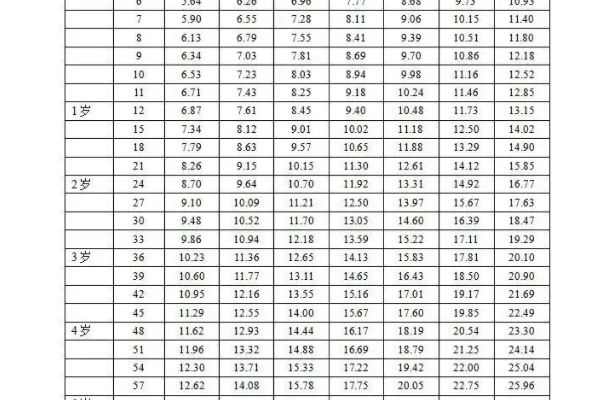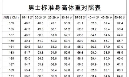 身高标准体重对照如下: