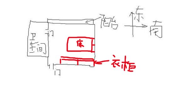 首先顺应地磁,头南脚北,其次床不能对着门,头不能对着窗,所以床的摆放最佳位置是在南墙,具体距离需要现场 实际考虑,衣柜放在西面墙体靠右,与床的距离最少为60cm,不知道你的室内尺寸是多少,只能说这么多了。