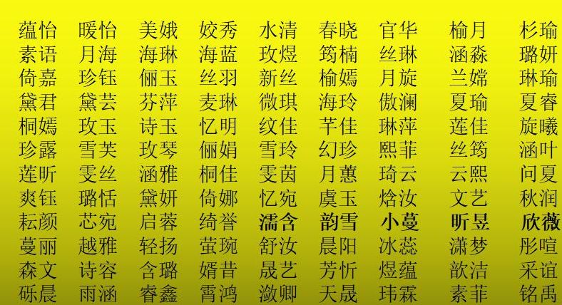 而每个时代的人们都有不同的观念和追求,比如早年间的福,贵,和,兴,英,勇,强,胜等等,女孩则是花,红,荣,梅,兰,霞,菊,香,莲,琴等。新中国成立后,建字和军字是最火的字了。还有文,武,栋,梁,保,卫,国等。大学恢复高考之后,硕,博,哲之类很火了一把,随之而来的还有一些比较文雅高超的诗词中的字眼,如涵,梓,浩,然,翰等等。