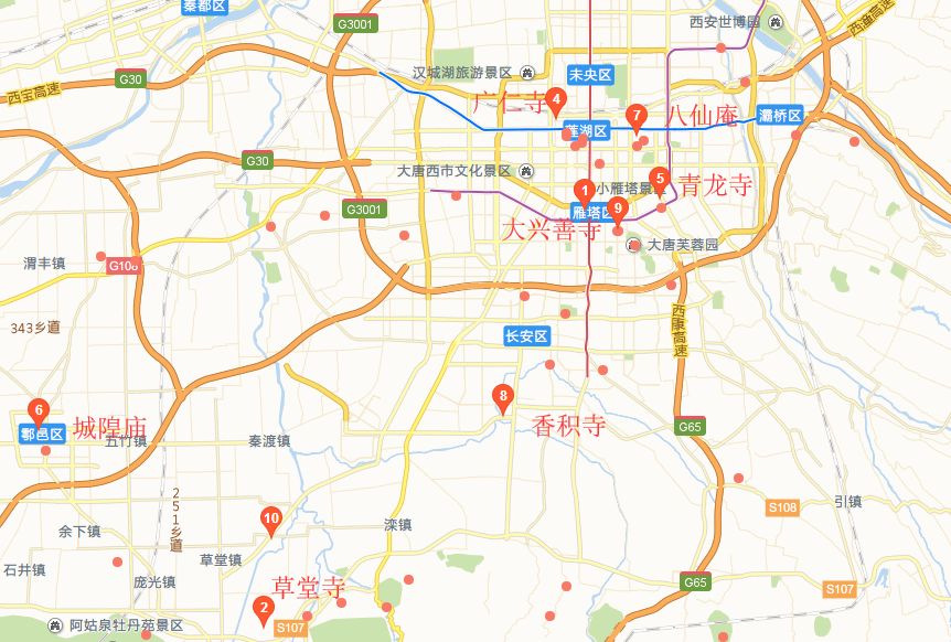 西安的寺庙很多,选取其中7个寺庙举例:
