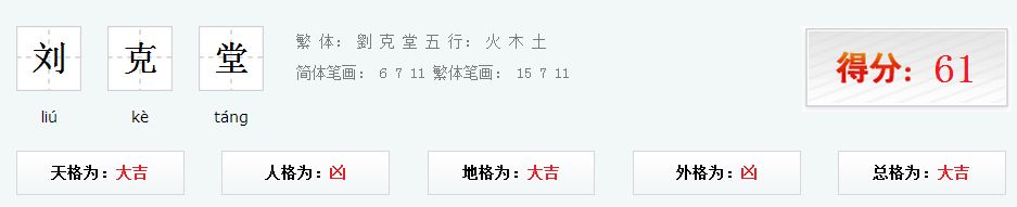 刘克堂的姓名测试结果